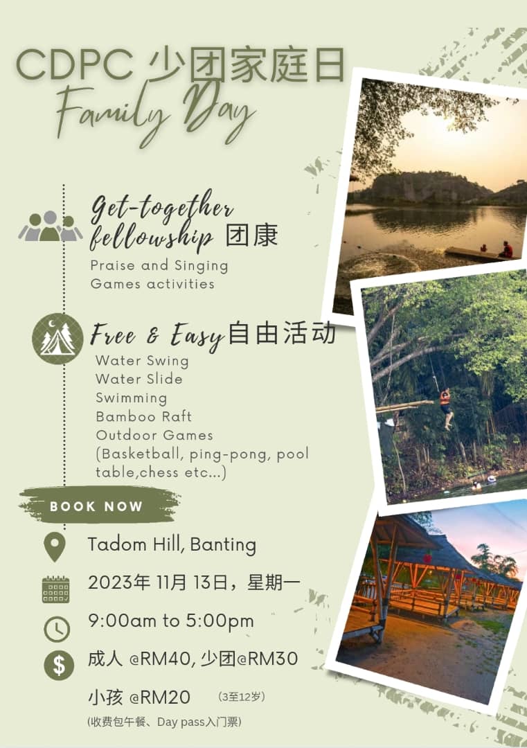 费用:成人 RM40 / 少团 RM30 / 小孩 RM20 ( 3-20岁)
